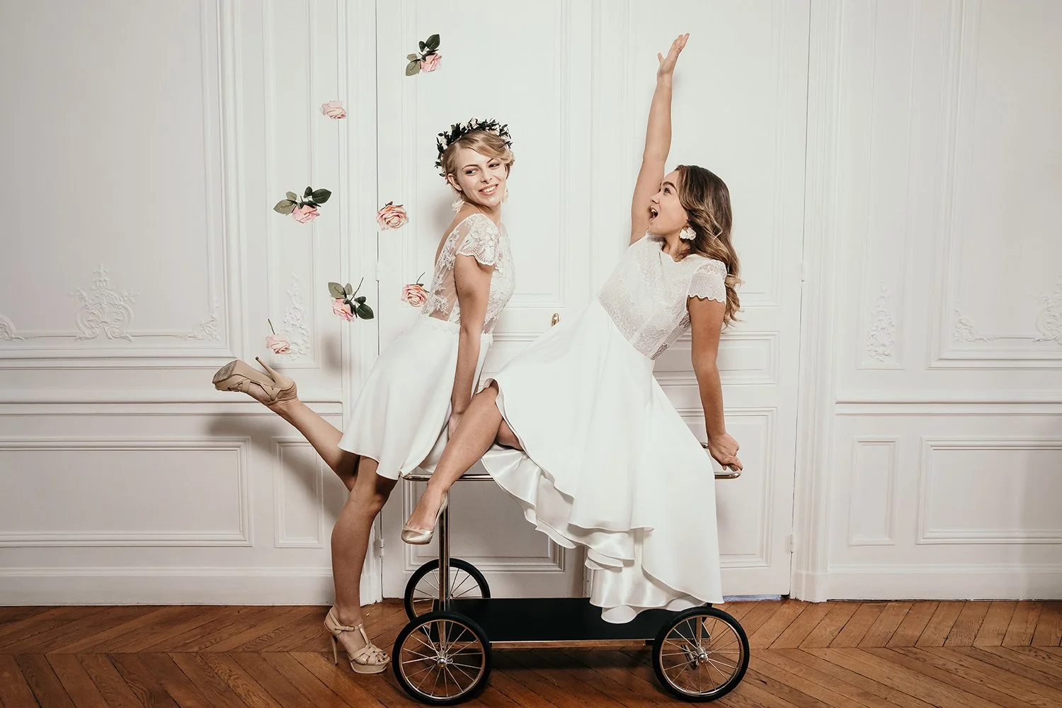 Les sœurs Sitbon sont spécialiser dans la couture floue des robes de Mariée. Naturellement elles créent des collection de robes dans un univers bohème chic.